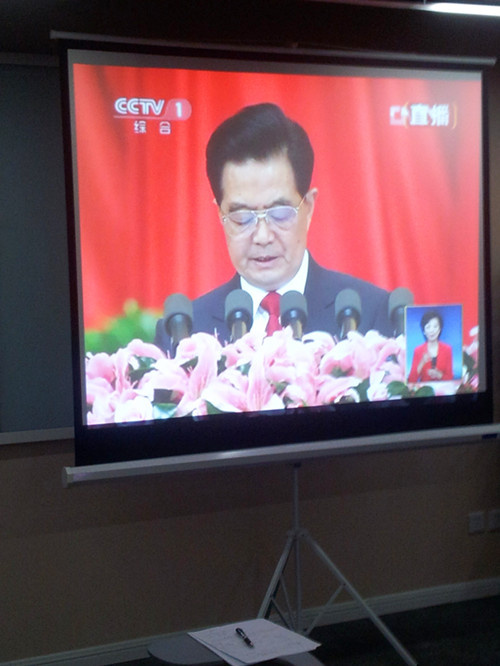 為(wèi)喜迎黨的(de)“十八大(dà)”,積極配合勁松街(jiē)道(dào)社會(h✘©uì)工(gōng)作(zuò)黨委工(gōng)作(zuò),201♦$<2年(nián)11月(yuè)8日(rì)上ε> •(shàng)午9點整,北(běi)京中隧黨總支™Ω組織公司全體(tǐ)黨員(yuán)、入黨積極分 γ☆(fēn)子(zǐ)及員(yuán)工(gōng)在培訓室共同觀看(kà∏ ♠n)了(le)“中國(guó)共産黨第十八次全國(guó)代表大(d←±à)會(huì)”的(de)視(shì)頻(pín)直播。