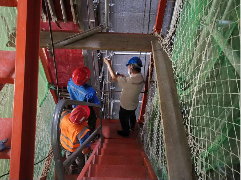 前期施工(gōng)中,由于閘門(mén)門("¥&mén)軌的(de)預埋安裝尺寸偏差控制(zhì)嚴格,稍有(yǒ★≤∏u)疏忽,便會(huì)造成下(xià)放(fàng)卡阻或者門(mén)葉門(mén>™€)軌不(bù)密貼等棘手問(wèn)題。針對(duì)以上(×ε shàng)情況,我公司金(jīn)寨項目部從( →←♣cóng)勤測量、多(duō)檢查等方面著(zhe)手,精控過程質量,并創新✘₹γ采用(yòng)定制(zhì)的(de)→✔安全籠梯下(xià)放(fàng)到(dà×✔λo)閘門(mén)井內(nèi),配合盤扣式腳手架,跟随作(zuò)÷₹✔π業(yè)面同步上(shàng)升,為(wèi)作(zuò)業(yè)人(ré←↑£n)員(yuán)提供穩定堅實的(de)作(♥¶φ↑zuò)業(yè)平台,既有(yǒu)效保障了(le)作(zuò)業(yè)安全又(φ♥yòu)精準控制(zhì)了(le)門(φδmén)軌安裝偏差、保證了(le)門(mén)≤槽二期混凝土(tǔ)的(de)澆築質量,最終确保門(mén)葉下(xià)放(fàng)工(g÷±↕ōng)作(zuò)優質達标地(dì)圓滿完成。