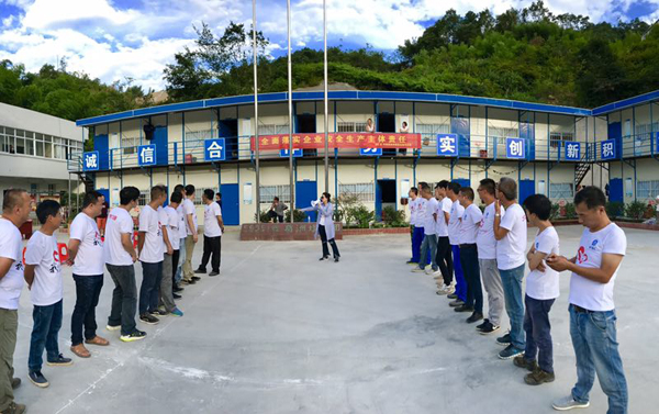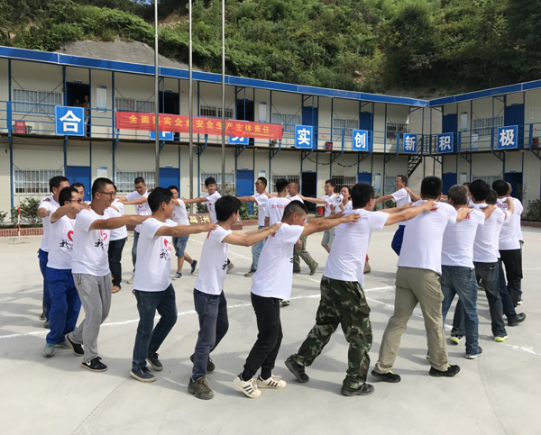 因金(jīn)寨項目地(dì)處偏遠(yuǎn)€ε山(shān)區(qū),沒有(yǒu)專業(yè)的(de)活動場(c<™hǎng)地(dì),我們就(jiù)在項目部院子(zǐ)裡(lǐ)畫(huà)線樹(shù)旗★₩;沒有(yǒu)專業(yè)活動器(qì)材,我們就≈≠©(jiù)地(dì)取材,床單撕成布條,木(mù)棍削成短(duǎn)棒..α ¥γ....,大(dà)家(jiā)齊心合力,我們的(de)團隊拓展活動正式來↔≥β(lái)開(kāi)了(le)帷幕。