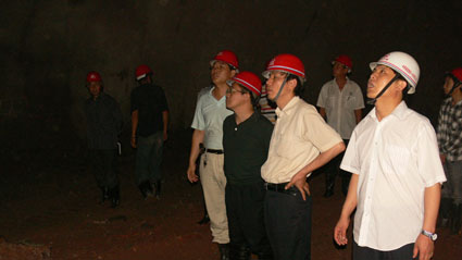 唐總和(hé)随行(xíng)人(rén)員( αyuán)在我公司承建的(de)石崗坡隧道(dào)出口斜井工(gōng)地(dì)現∞< (xiàn)場(chǎng)調研。