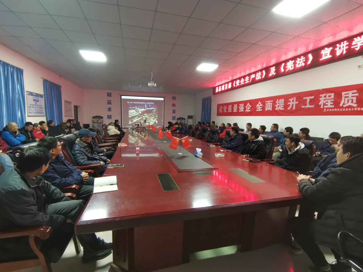2020年(nián)12月(yuè)1日(rì)—7日(rì)& ∞₽是(shì)第四個(gè)《安全生(shēng)産法》宣傳周,12月(yuè)4日(ε&<rì)是(shì)第七個(gè)國(guó)家(jiā)憲法日±"★(rì)。易縣項目部為(wèi)貫徹“深入學習(xí)宣傳習(xí)近(jìn)平法治₩✔•思想,大(dà)力弘揚憲法精神”的(de)活動主題,'δ舉行(xíng)了(le)國(guó)家×♠(jiā)憲法日(rì)暨《安全生(shēng)産法》宣傳周活動,α÷•讓法治宣傳進項目、進班組,大(dà)力弘揚憲法精神,大(dà)力宣傳普及安全生(shēng)産法律₽法規,全面營造尊法、學法、守法、用(yòng)法的'Ω(de)濃厚氛圍。