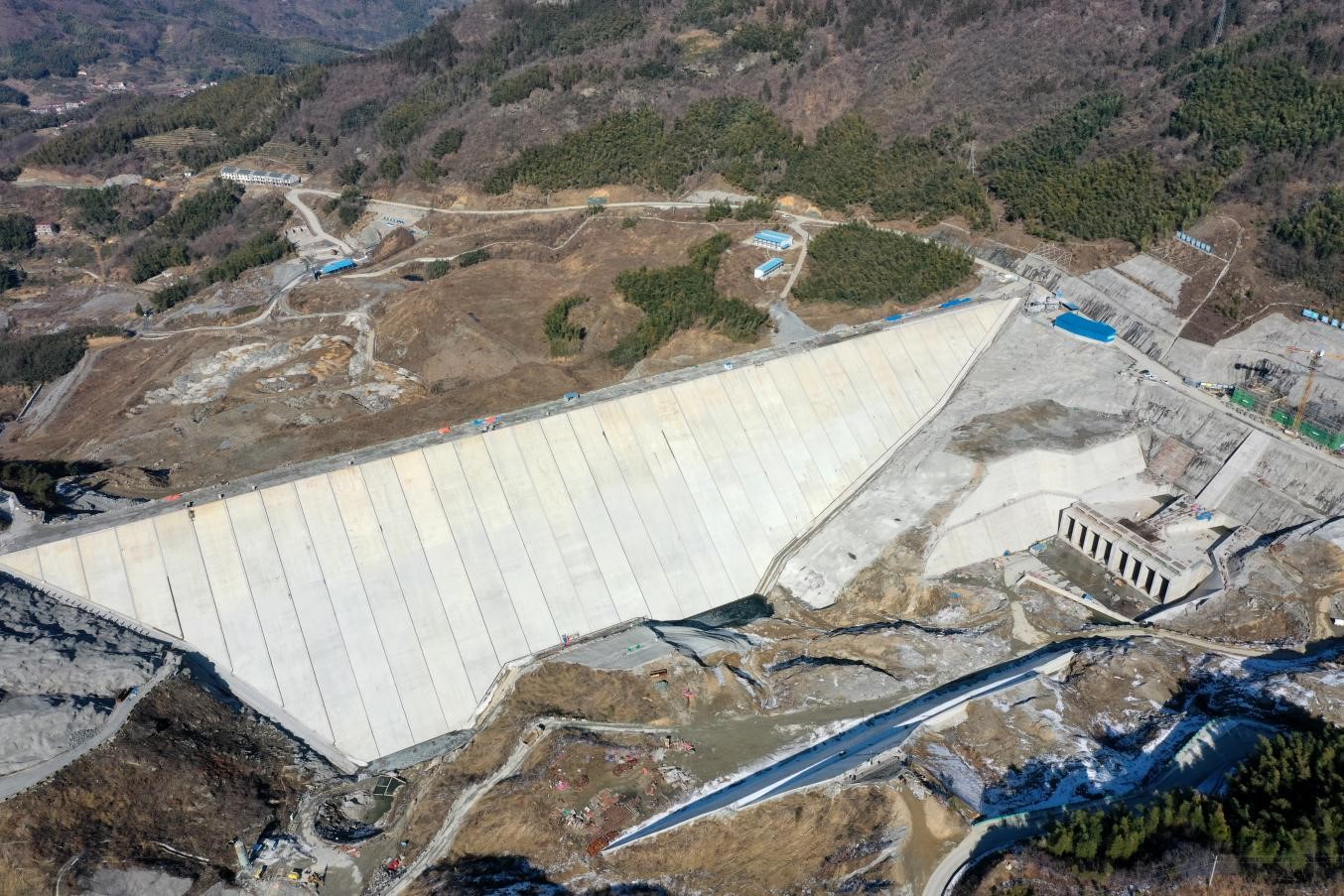上(shàng)水(shuǐ)庫大(dà)壩及進水(shuǐ)口施≈π工(gōng)形象面貌