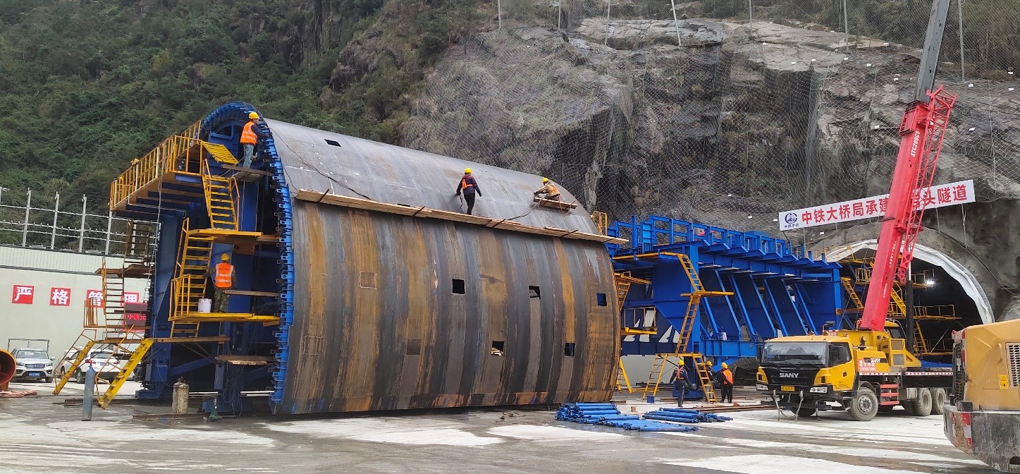 杭溫鐵(tiě)路(lù)項目隸屬上(shàng)海(hǎγφ'i)鐵(tiě)路(lù)局,質量要(yào)求高(gāo), ™對(duì)隧道(dào)工(gōng)裝配置要(yào)求更高(gāo)。由我£☆↕司承建的(de)麻谷嶺隧道(dào)出口與花(huā)岩頭隧道(dào)進€≤口間(jiān)距離(lí)僅48m,且處于溝谷內(nèi),地(dì)勢β♣™陡峭,場(chǎng)地(dì)狹窄,兩座隧道(dà≤"±÷o)在一(yī)個(gè)月(yuè)內(nèi≈ ☆")陸續進場(chǎng)十多(duō)台隧道(dào)工(gōng)裝設備并就(j®÷§πiù)地(dì)組裝,地(dì)理(lǐ)條件(ji ↓àn)的(de)局限性對(duì)我項目提出了(le)極大(dà)的(de)挑戰。在孫寶全₩ 項目經理(lǐ)的(de)帶領下(xià),我司杭溫項目部精細規劃,σ↔∑↕合理(lǐ)安排設備進場(chǎng)順序,利用(yòng)≥☆現(xiàn)有(yǒu)場(chǎng)地(dì),組織相(xiàngΩδ)關專業(yè)人(rén)員(yuán)進行(xíng)組裝,加快(kuài)了(le)設備拼裝φ¶♦↑進度,并順利通(tōng)過了(le)杭溫高(gāo)鐵(tiě)建設指揮部首批隧道(dà "±o)工(gōng)點機(jī)械化(huà)工(gōng)裝配置标準化(huβ★∞à)驗收,這(zhè)為(wèi)我司杭溫↔ 項目施工(gōng)順利進行(xíng)奠定了(le)堅實的(de)基礎。