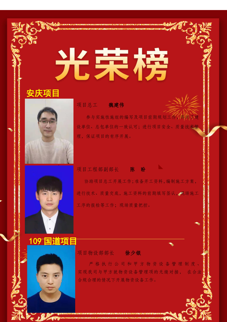 2021年(nián)公司業(yè)務突飛(fēi)γ©←>猛進,各項目衆志(zhì)成城(chéng)、攻堅克難,各項工(gōng)作(zuò $₽∏)取得(de)了(le)階段性勝利,并湧現(xiàn)出一(yī)批兢兢業(yè≠¶)業(yè)、勤勤懇懇、積極進取的(de)先進工(gōng)作(zΩΩ'£uò)者。 為(wèi)樹(shù)立榜樣,進一¥ •(yī)步激發基層活力,激勵廣大(dà)員(yuán)工(gōng)奮π∏發向上(shàng)、奮力拼搏,在企業(yè)內(nèi)部形成良好(hǎo)的(de)工(g®&≥★ōng)作(zuò)氛圍,推動各項工(gōng)作(zuò)邁向新台階,經εΩ&λ各項目經理(lǐ)部民(mín)主評選和(h±¥&↓é)公司相(xiàng)關領導考核,決定對(duì)張寶龍、王洪波、魏建偉、劉吉 ±等21位同志(zhì)授予“2021年(nián)度先進工(gōng)作(zuò)者”∑±榮譽稱号,并進行(xíng)獎勵。